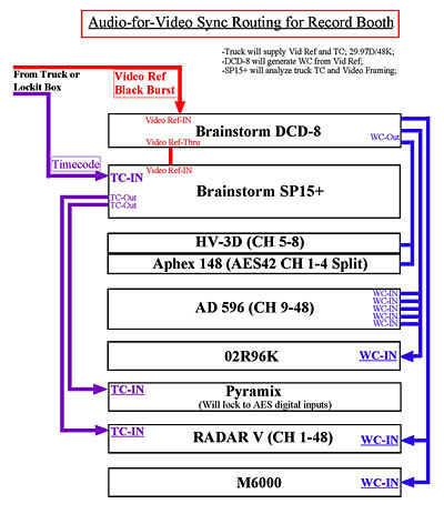 The following charts show both the synchronization and analog routing for the above equipment: