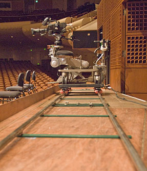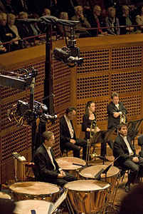 17 - Vertically telescoping camera between timpani and brass. |