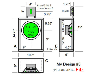 SL:  Yes, and when you are done, you need a stand for your woofer box to bring the tweeter to ear level height. That stand could do more than just holding up the box. It could provide additional air volume for a lower box resonance and thus less equalization to extend the low end.
