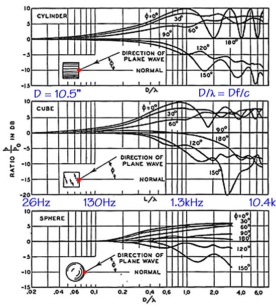 SL:  These curves are for the on-axis response. You can probably imagine that it is even more difficult to calculate the off-axis response. Long ago, in 1938, three Bell Labs researchers, G. G. Muller, R. Black and T. E. Davis, published in