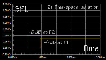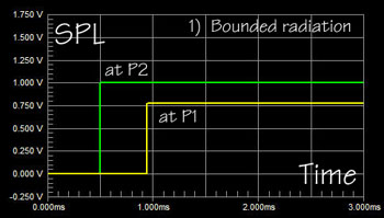 With the observation point P1 a long distance from the source S and with a pressure step radiated from the source, you then  have the following picture for R = 6":