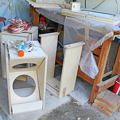 Assembling Top baffle, Woofer baffle and BridgeThe LX521 Construction Plans provide drawings and information for cutting wood and assembling the speaker baffles. Not everyone has access to the necessary tools, working area or skill to build the baffles from scratch. On this page I will document my experiences and observations when staring out with pre-cut wood parts and subassemblies from www.LINKWITZ.store. Box 2 of 3