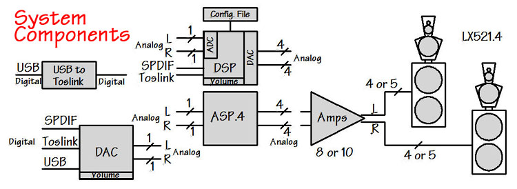 LX521 speakers utilizes 8 amplifiers, the LX521.4 would take 10 amplifiers. A separate amplifier channel is allocated
