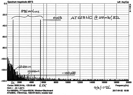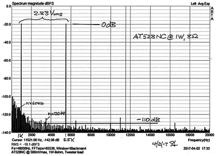 8 ohm resistor. Harmonic distortion products are always of lower amplitude than