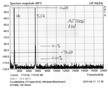 The intermodulation distortion performance of the AT1806