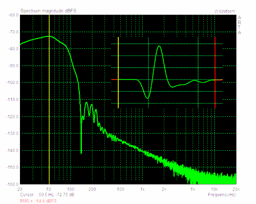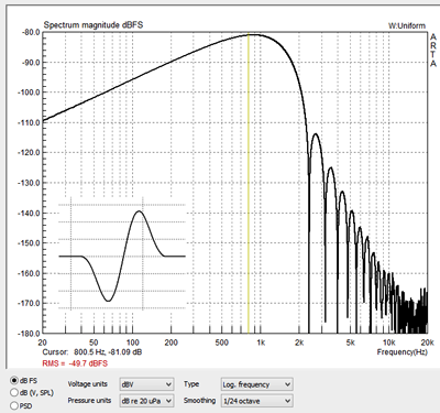 800 Hz test signal (inverted relative to *.wav-file) from Nexus 4 Android phone and its spectrum