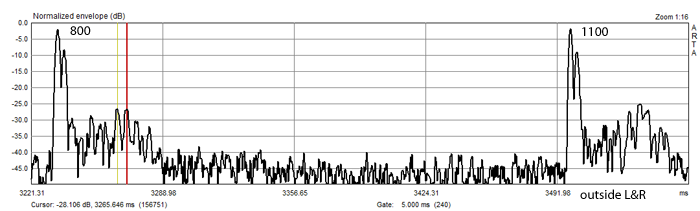 With the 800 Hz burst one begins to see readily explainable details of this outside test setup.
