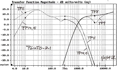 PLUTO-2.1PLUTO, the small 2-way active loudspeaker system that was introduced in 2005 has undergone several changes to improve its acoustic performance and to make it easier to build. Most significantly the woofer/midrange driver was replaced by a special Seas unit to obtain lower non-linear distortion and increased bass output. This became Pluto-2 . It required component changes on the printed circuit board of the original PLUTO to update the equalization and crossover for the new driver. Also a new mounting scheme was introduced for the woofer/midrange driver to improve the looks and to provide an alternative in situations where the original rubber pipe coupler is difficult to find or not desired. The base, which houses the two power amplifiers, the electronic crossover and equalization, was increased in size to make room for larger heat sinks, for ventilation and for easier access to the circuit board. No changes were made in the tweeter selection. The Aura driver is instrumental to the omni-directional PLUTO concept since this tweeter allows for a low 1 kHz crossover frequency and uniform radiation over large off-axis angles up to several kHz due to its small external dimension. I am not aware of another equally well suited driver for this application. I have built, measured and listened to a number of Pluto-2 systems both at home and in other locations. The new Seas driver had required a change in equalization. That change indicated further potential for refinement and I have revisited the equalization process as if starting new. Equalization in my loudspeaker designs is usually a correction of trends in the frequency response. The measured frequency response often hides these trends in some fine grain structure. The fine grain structure is usually the result of reflections in the measurement environment and diffraction from the loudspeaker cabinet. Thus the chosen equalization for a seemingly flat on-axis response may not yield a flat response, if the artifacts could have been removed. Some educated guess work is involved in equalization. It yields more realistic results than the blind equalization of every detail often used in computer software. It is not surprising then that re-equalization can lead to somewhat different woofer and tweeter drive signal frequency responses, especially when the underlying physical phenomena are better understood.