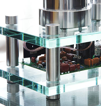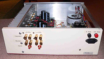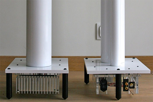 audio market. Pipes and enclosures are made from Aluminum. Four power amplifiers, line level analog crossovers and