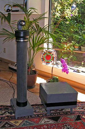 Listening observationsThe addition of the subwoofer to PLUTO had somewhat surprising results. Not only does it extend and increase the low frequency output capability as expected, but it also extends the tonal similarity to the ORION into the low bass region. ORION goes subjectively a little deeper but the overall character is almost identical, yet one is a monopole and the other a dipole. Listening to either speaker system in the setup that I described for PLUTO I can easily get confused as to which speaker I am listening to and that on a wide range of program material. Currently, I listen to PLUTO+ mostly from my favorite relaxing and reading chair, from 12' (3.6 m) distance to each tweeter. The tweeters are 7' (2.1 m) apart from each other. For that location I need to increase the PLUTO+ volume level to match the ORION and I lose some imaging specificity. This would be expected as the ORION, being directional, reaches deeper into the room, somewhat like two flash lights compared to two bare light bulbs. Other than that the two systems are still amazingly close on A/B switching, even their sound stage size. At extreme off-axis angles the PLUTO+ sound stage moves less to the nearest speaker than with ORION. Both systems are set up away from walls and corners in my large room which is a preferable setup for any speaker. I do not know how this comparison would hold up in a small room. Suffice it to say that I am exceedingly satisfied with the results. The PLUTO+ loudspeaker system requires no apologies (other than maybe for its funky looking form-follows-function design) and is a worthy alternative to the ORION.