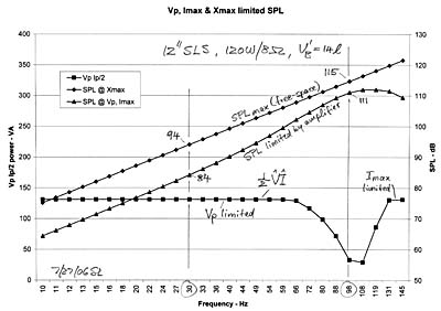 Driver selectionTwo drivers were considered, the Peerless 12" SLS 830669 and the 10" 830668 since they are relatively low cost, are available worldwide and have adequate volume displacement. The 12" driver is capable of 4 dB higher excursion limited SPL because of its larger piston area. The closed-box1.xls spreadsheet was used to investigate how these two drivers would behave in a small 14 liter box when driven from a 120W amplifier. Alister Sibbald added a driver data base to the rearranged spreadsheet. Being able to see the graph change as you change the variables gives better insight into the way the variables interact: Closed-Box-WithDriverDb.xls