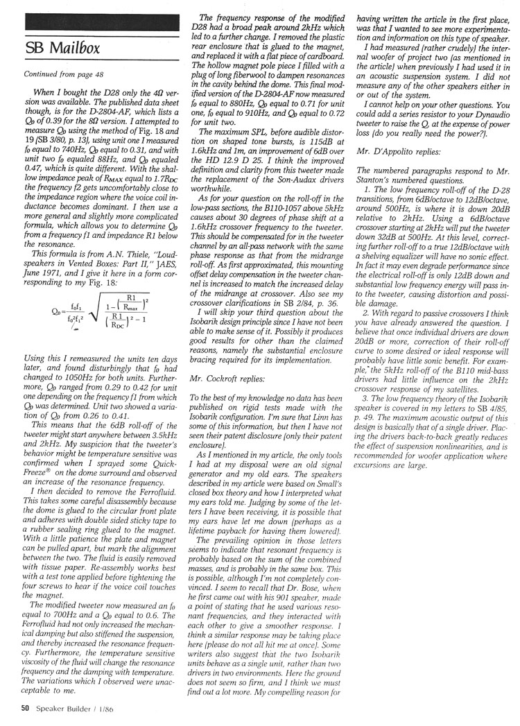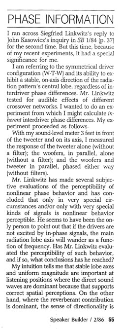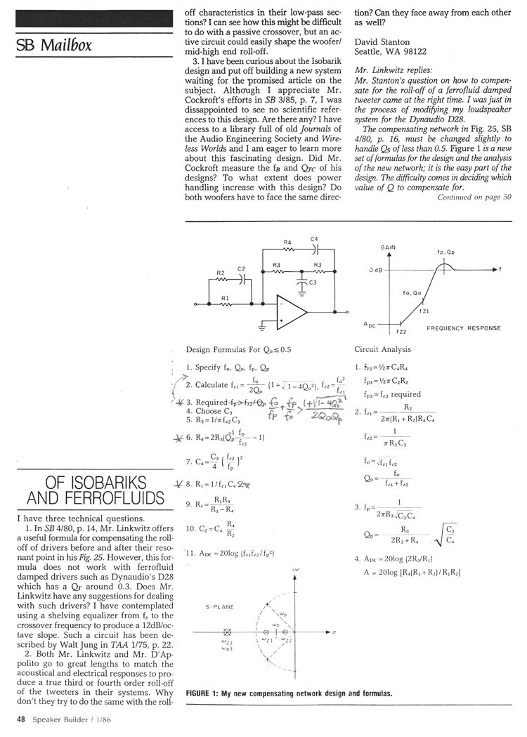 10 - Linkwitz Design Developments, SB 1/84 ----------------------------------------------------------------------------------