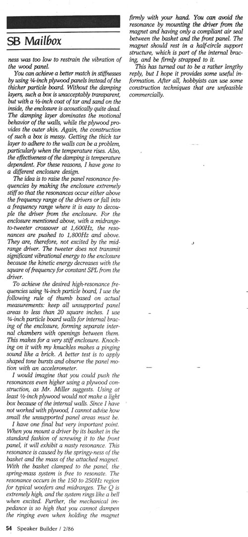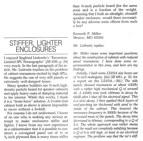 5 - Stiffer, Lighter Enclosures, SB 2/86 ------------------------------------------