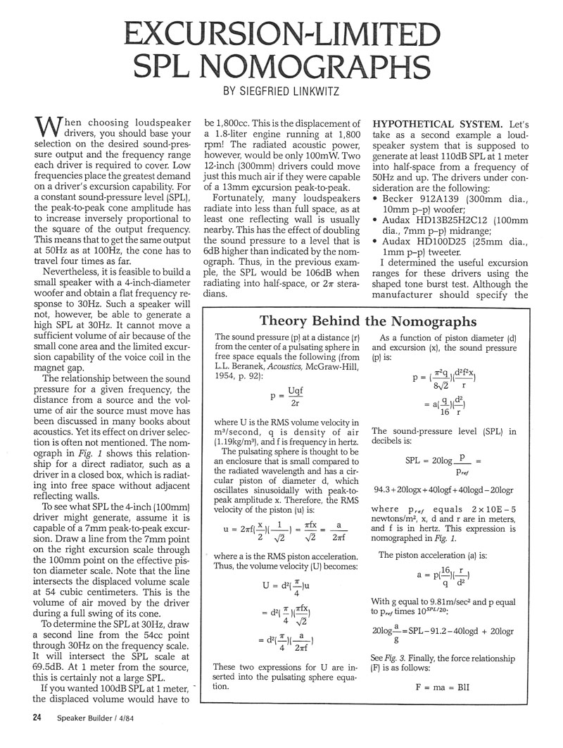 Excursion-Limited SPL Nomographs