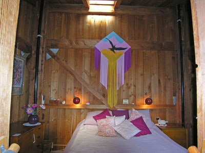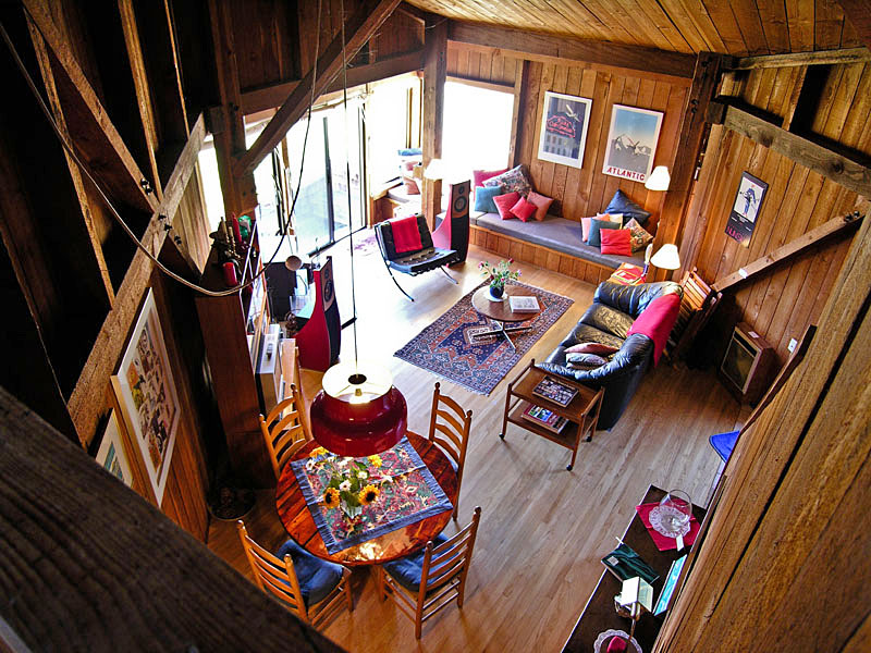 The "Honeymoon Cottage" was designed by William Turnbull, a member of the original group of UC Berkeley architects that worked on The Sea Ranch. It exemplifies their philosophy for blending buildings with their natural surrounding. This Sea Ranch vacation home is of striking post and beam construction with rough hewn lumber. The furniture and decor inside are a blend of bright, warm colors, accentuating the wooden interior. For your convenience a writing/computer desk has been added recently. The home has a living space with very high ceiling and upstairs bedroom loft. It is well suited to the unique Linkwitz Lab Orion loudspeaker system that is set up in the cottage and which has made it a destination for audiophiles who are searching for the best in sound reproduction.