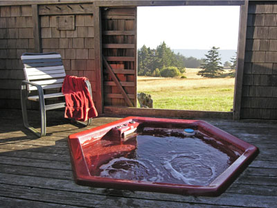 Hot tub with Pacific Ocean view sliding window