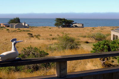 "Sea Pine Cottage", one of our Sea Ranch vacation homes is looking over a large meadow to the Pacific Ocean. Walking distance is about 400 yards down to the rugged shore line, which is typical of Northern California. The wide open meadow  presents itself as a natural surrounding for deer, rabbits, wild turkeys and other birds of every kind.