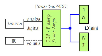 DSP / Pre-amplifier / Power-amplifiersPowerBox 4180 .... €1890 Two woofer signal outputs (ch 5 & 6) allow external amplification for LX dipole woofers of LXmini+2 or LXstudio