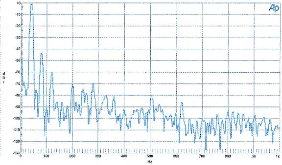 Distortion is also very low, an example of which is shown in Fig. 3. That’s a pretty damn loud 40 Hz tone, and the second harmonic is only –43 dB (0.7%), with the third harmonic, which is more important, down to –60 dB (0.1%). I could have made many more measurements, but it’s fairly obvious that they would not have changed the overall picture. (Linkwitz is quick to point out on his Web site the shortcomings of simplistic measurements such as mine, but it’s nice to know that the numbers are good even if they don’t tell the whole story.)