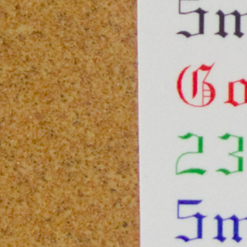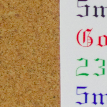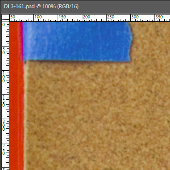 Lens sharpness comparisonThe lenses for the Lumix and Leica camera models that are investigated here have been manufactured by Panasonic. The question is about their specifications. Do the Leica models have lenses with tighter tolerances than the Lumix models? In some test shots I noticed that the Leica D-Lux 3 gave a blurrier picture at the edge than the Lumix LX2. The cameras were tripod mounted, no image stabilization, manual focus to infinity, 2 second shutter delay. So there was no motion blur. I took multiple landscape pictures with all four cameras. Their sharpness distribution over the picture area did not change significantly with focal length or aperture used. Seeing how the gravel roof also showed the lack of sharpness, I decided to take four close-up pictures of sand paper, one for each camera.