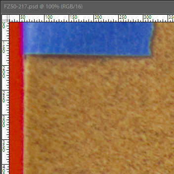 Test resultsIn all cases the exposure time was 1/13 s, the aperture f:3.2 at ISO 100. The focal length was 9.2 mm for the large cameras and 8.7 mm for the small ones. The RAW files were processed in ACR with its default settings. Thus there is minimal Sharpening applied (25, 1.0, 25, 0) and Noise Reduction 0 for Luminance and 25 for Color. So these pictures should only be evaluated relative to each other and not for optimum sharpness. The center of the image was always the sharpest region. The lower right corner was the worst for all four cameras, which is probably a coincidence.