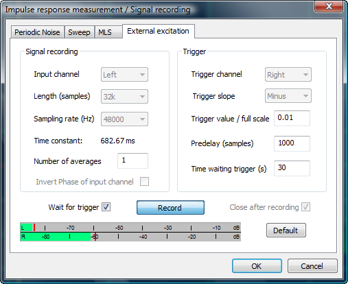 The signal generator is made up of an HP 33120A Arbitrary Waveform Generator from 1994 and a Hafler DH-220 power amplifier from even longer time ago. The 33120A can generate user defined bursts of selectable count and rate. The bursts can be triggered manually. Thus a signal of defined shape, frequency, amplitude and duration can be applied to the driver under test. |