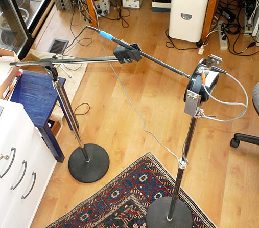 Radio Shack microphone stands. The microphone position in front of the tweeter dome is easily adjusted by the microphone clamp and the extension arm of the stand. The microphone is placed 10 mm from the apex of the dome. Before taking measurements I check out the setup and its operation with an old driver and at low signal levels to avoid costly mistakes, which occur easily at high power levels
