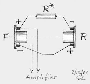 Rear tweeter level adjustmentThe rear tweeter is to be wired in parallel with the front tweeter in dipole polarity. This means that the (+) terminal of the front tweeter is connected to the (-) terminal of the rear tweeter and the (-) of the front tweeter is wired to the (+) terminal of the rear tweeter. The front tweeter is wired to its power amplifier. The tweeter level is adjusted on the ASP circuit board where each tick mark on the potentiometer represents a 0.5 dB change. The total range is +/-2.5 dB around the center position. In most loudspeaker setup situations the optimum combined front and rear tweeter level is found by fine tuning the potentiometer. It is still surprising to me how significant a change in the sonic gestalt is perceived from a 0.5 dB adjustment in level. This is not observed in an instant A-B comparison but by extended listening. You will know subconsciously when the level is right, just as you know when there is something not quite right. Of course, you will need to use a variety of recordings and not rely on the one recording you always used as a reference. Stick with classical, live jazz, choral, female vocal, etc. Stay away from heavily processed studio recordings. With the correct setting, the sound should be natural and balanced, but not bright. The high frequencies become completely integrated with their midrange fundamentals and do not stand out unless that is the characteristic of the source or the recording. There is space and air to the highs. There are apparently setup situations, though, where the optimum tweeter level is difficult to find. In such cases the following procedure is suggested.