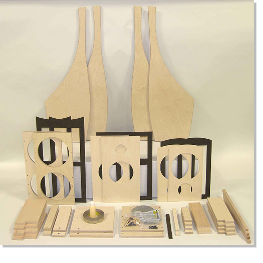 Wood Artistry sells their manufactured parts only to owners of the ORION Construction Plans. Complete system are delivered with a detailed Operating and Service Manual to guarantee that the speakers can be maintained at their original performance for many years to come. Prices may have changed due to increases in material and labor costs. The complete, turn-key system includes an electronic crossover/equalizer, speaker cables, interconnects and an 8-channel power amplifier. The system comes ready to be plugged into your pre-amplifier output. We offer it in several standard wood versions, all include the Revision 0.1 midrange driver mounting.