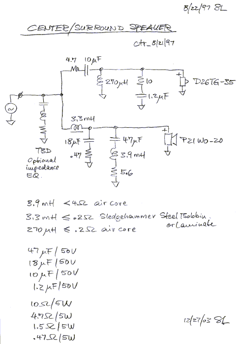 The woofer equalization network above already includes a