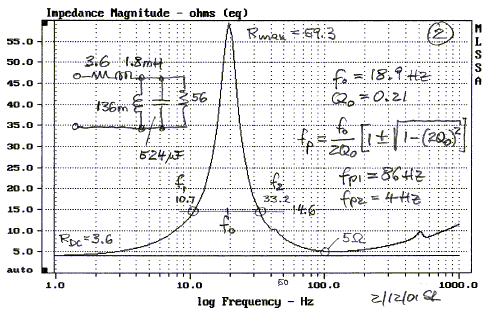 driver terminal impedance curve explains the roll-off behavior. The low Qts <