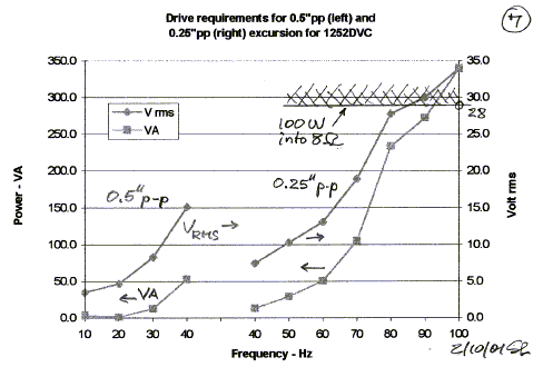 for 0.5" p-p excursion and the power in VA that the amplifier must deliver