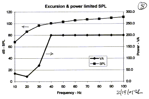 excursion only below 40 Hz before running out of power. Above 40 Hz the cone